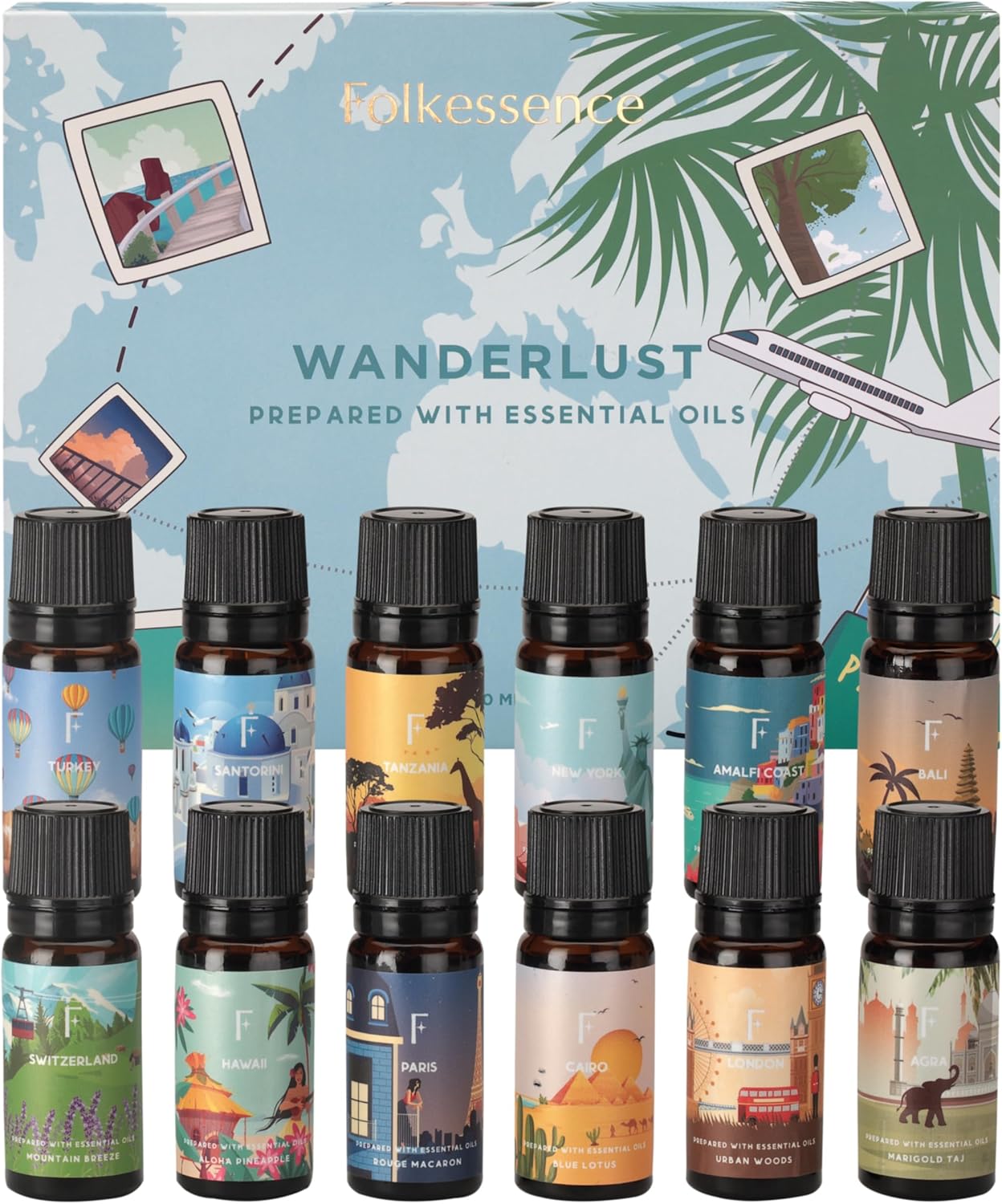 [VALUE PACK - Set of 12]- These essentials oil set come in a value pack of 12 - 10ml widely used ingredients that include Hamam, Italian Lemon, Rouge Macaron, Rose Plum, Coconut Cove, Blue Lotus, Wild Woods, Mountain Breeze, Urban Woods, Mountain Breeze, Urban Woods, Coffee Roster, Aloha Pineapple and Marigold Taj.