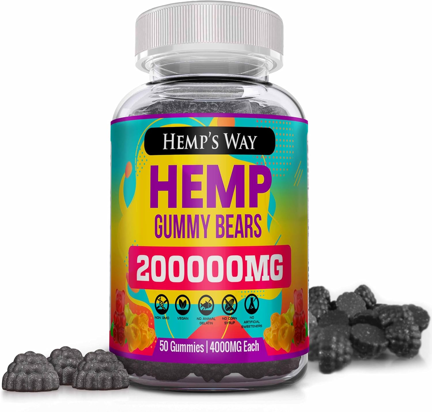 【Delicious Hemp Gummies】 Organic, GMO free, Gelatin-Free. Hemp gummies made from Organic Hemp Extract. It tastes great , looks cute and smells so good! (2 Pack =180 Gummies)