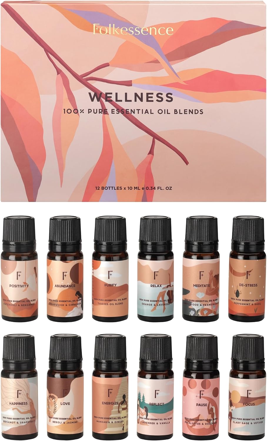 Essential oil gift set includes: TeaTree, Peppermint, lavender, eucalyptus, Frankincense, rosemary, Lemon & orange. essential oils gift set ,Suitable for birthdays, wedding celebrations or housewarming parties