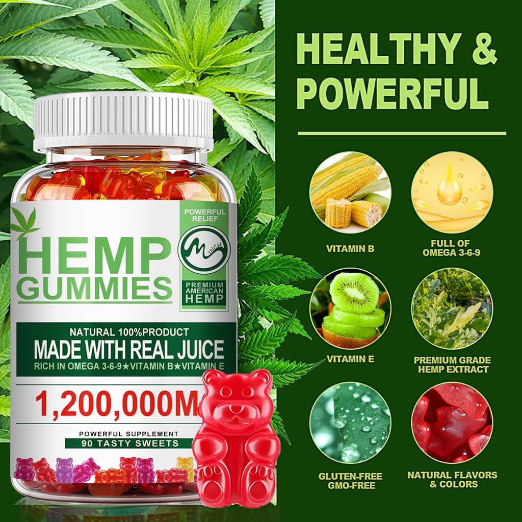 【Nutrent-rich Fruity Gummy】Our Hemp Gummies contain high quality Protein, Polyunsaturated Fatty Acids, Hemp Oil, Omega 3, Omega 6, Omega 9, Fiber, Vitamin E, Vitamin C, Iron, Zinc.