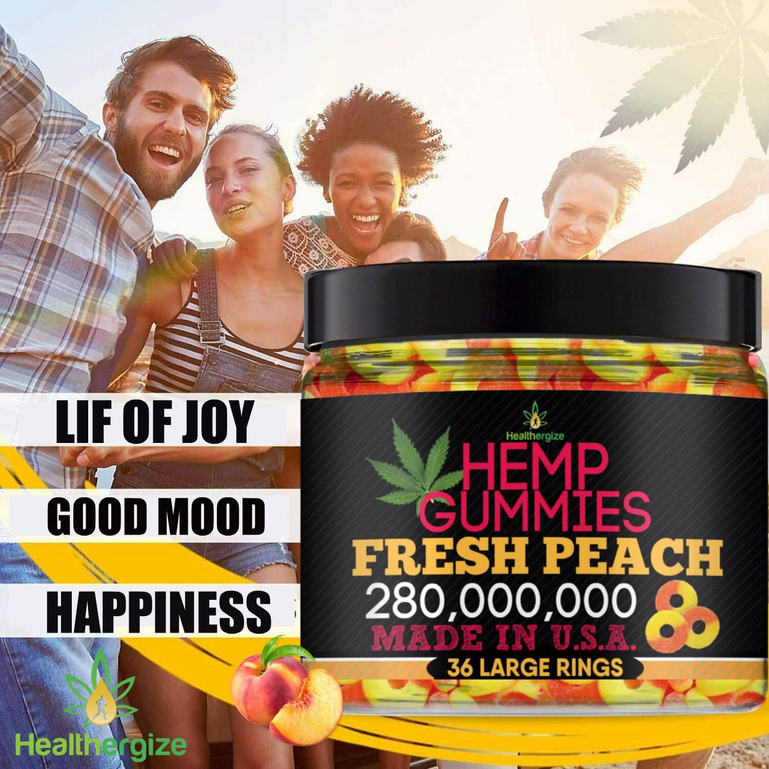 Hemp Gummies for Peace and Relaxation-High Potency Hemp Oil Gummys Peach-Fresh Full Flavor-Natural Hemp Edibles-for Back, Knees, Muscles, Joints, Calm, Sleep, Discomfort-36 Large Rings-Made in USA