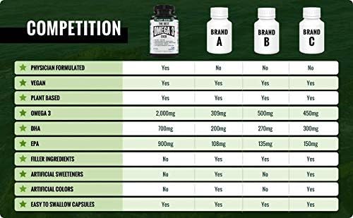▶ BIOAVAILABLE DHA AND EPA ALGAE SUPPLEMENTS* – Our Algae Omega 3 contains a total of 2000mg of Omega-3s, 700mg DHA, and 900mg EPA per serving. By going directly to the original source of Omega 3’s, this supplement provides all the benefits you would expect from regular Fish Oil. (1) Serving is 4 capsules – 120 Capsules (30 Day Supply) per bottle